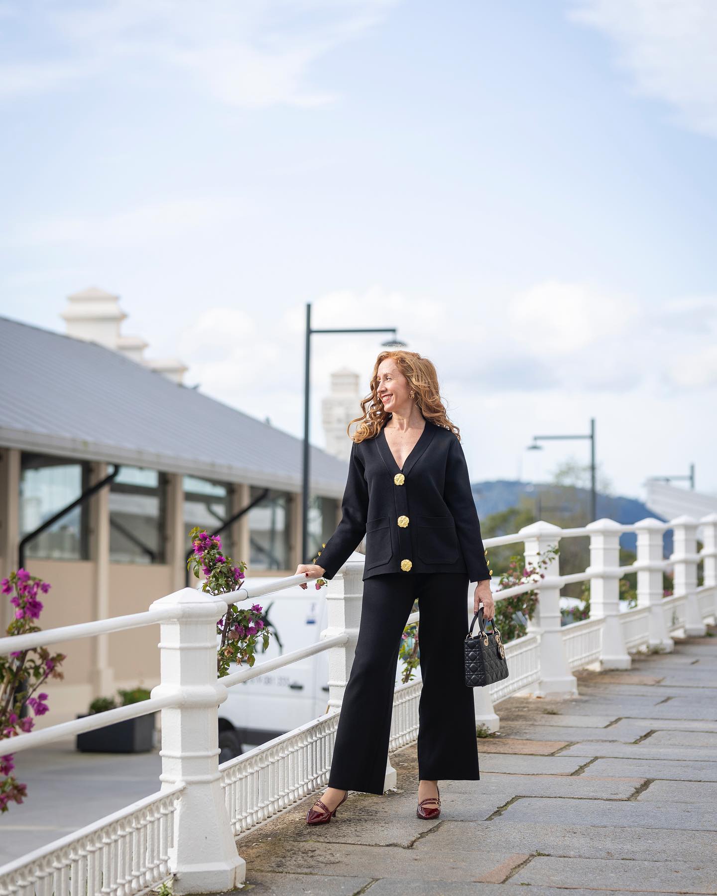 Affichez un luxe discret avec cet ensemble cardigan et pantalon en tricot, conçu pour allier raffinement et bien-être. Son design sophistiqué, agrémenté de boutons dorés et de poches plaquées, apporte une touche chic et intemporelle à votre garde-robe.